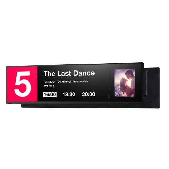 Obzvlášť široký pomer obrazovky 16:4 s výškou displeja iba 28,9 cm umožňuje inštaláciu v stiesnených priestoroch a zabezpečuje ostrý a príjemný obraz.
