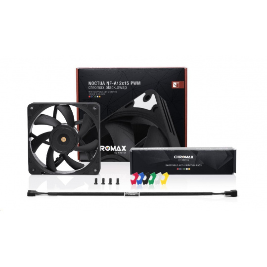 Rad NF-A12x15 si vyslúžila popredné miesto pri výbere 120mm ventilátorov množstvom ocenení a odporúčaní od technických časopisov a stránok po celom svete. NF-12x15 PWM chromax.black.swap kombinuje tichý chod tejto rady a elegantný celokovový čierny dizajn rady chromax.black. Balenie obsahuje aj sadu protivibračných podložiek pre tých, ktorí radi svoj stroj farebne zladia. Kvalitu chodu a spokojnosť tiež zabezpečí SSO2 ložisko, viac ako 150000 hodín MTTF a 6 rokov záruky u výrobcu.