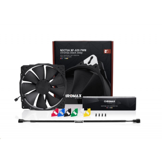 Rad NF-A20 sa zaslúžila o poprednú voľbu pri výbere 200mm ventilátorov množstvom ocenení a odporúčaní od technických časopisov a stránok po celom svete. NF-A20 PWM chromax.black.swap kombinuje tichý chod tejto rady a elegantný celáčierny dizajn rady chromax.black. Balenie tiež obsahuje sady rôznoch farieb káblov a protivibračných podložiek pre tých, ktorí si radi svoj stroj farebne zladia. Kvalitu chodu a spokojnosť tiež zabezpečí SSO2 ložisko, viac ako 150000 hodín MTTF a 6 rokov záruky od výrobcu.