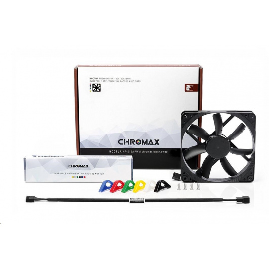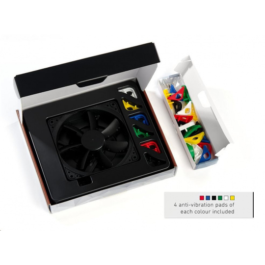 ventilátor, ultratichý, rozmery 120x120x25mm, hlučnosť 17.8dB, prietok 107.5 m3/h, 300 až 1200 otáčok, optimalizovaná geometria a povrch lopatiek, SSO2, edícia Chromax - vymeniteľné farebné antivibračné podložky