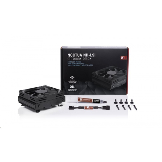 NH-L9i chromax.black je celokovová čierna verzia cenami ovenčeného nízkoprofilového chladiča NH-L9i pre HTPC a SFF systémy. Vďaka overenému dizajnu heatsinku a NF-A9x14 PWM ventilátoru ostáva verný úspešnej štruktúre klasického NH-L9i, ktorá kombinuje minimálnu priestorovú náročnosť (výška iba 37 mm) so silným výkonom, úžasnou tichosťou prevádzky a 100% kompatibilitou s RAM a PCIe. To všetko v elegantnom čiernom dizajne. Tento dokonalý výrobok uzatvára známy SecuFirm2™ multi-socket systém, teplovodivá pasta NT-H1 od Noctuy a plná záruka. NH-L9i chromax.black je tak samozrejmou voľbou, ak hľadáte kompaktný heatsink, ktorý vyzerá tak skvelo, ako chladí.