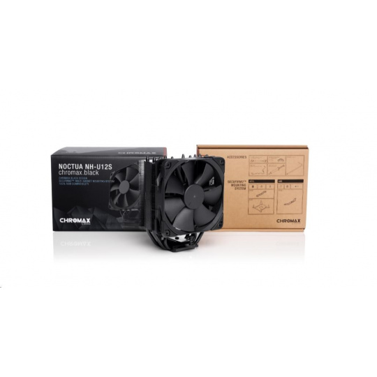NH-U12S chromax.black je celáčierna verzia obľúbeného modelu NH-U12S. Vďaka overenému dizajnu chladiča a ventilátora NF-F12 PWM dosahuje rovnako dokonalý výkon pri výnimočnej tichej prevádzke. To všetko v elegantnom čiernom dizajne. Túto dokonalosť uzatvára známy SecuFirm2™ multi-socket systém, teplovodivá pasta NT-H1 od Noctuy a plná záruka. NH-U12S chromax.black je tak samozrejmou voľbou, ak hľadáte univerzálne kompatibilný 120 mm chladič, ktorý vyzerá tak skvele, ako chladí.