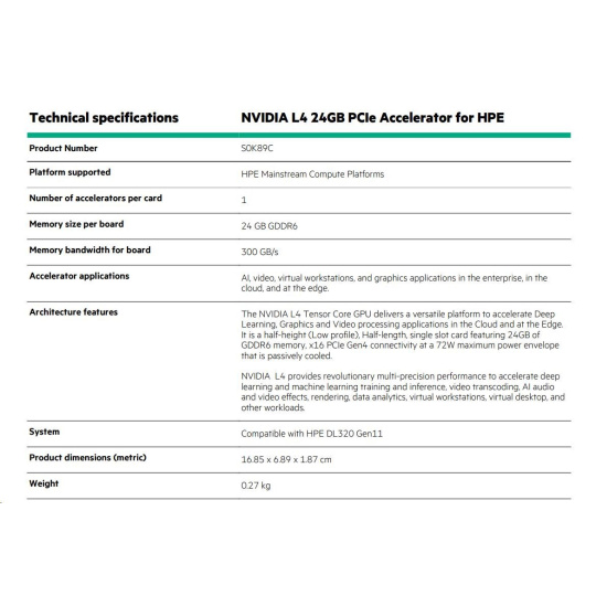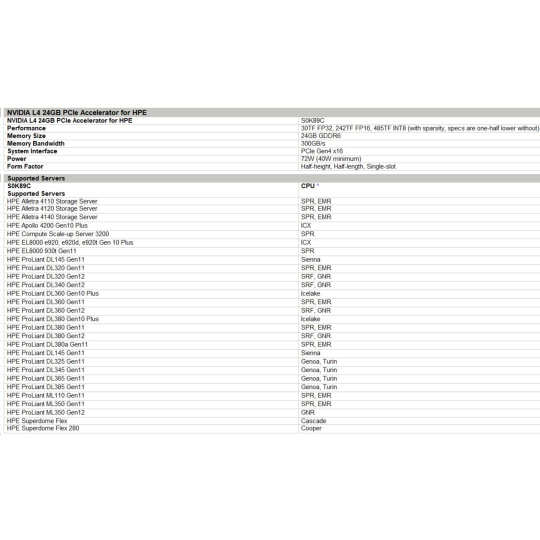 NVIDIA L4 24GB PCIe Accelerator for HPE S0K89CR RENEW.