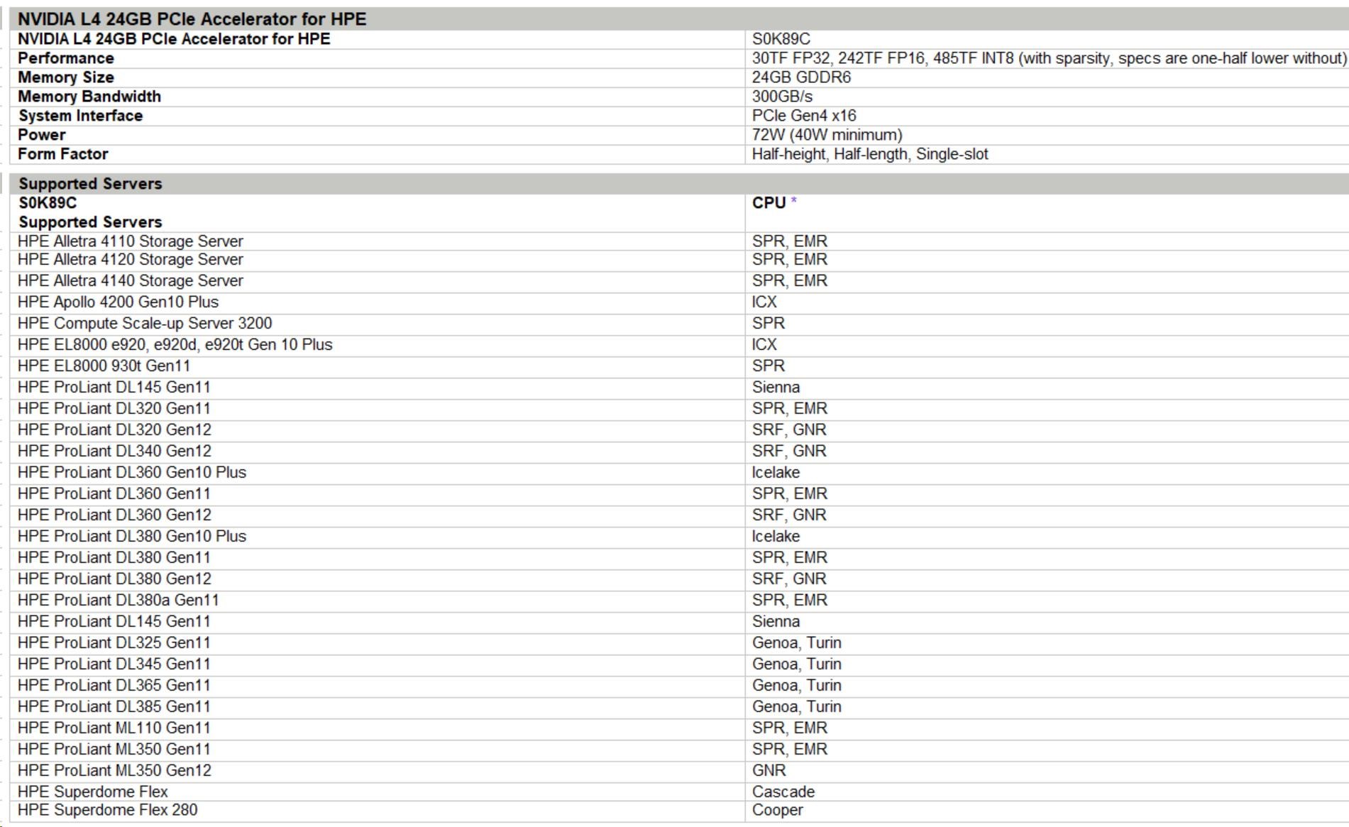 NVIDIA L4 24GB PCIe Accelerator for HPE S0K89CR RENEW.