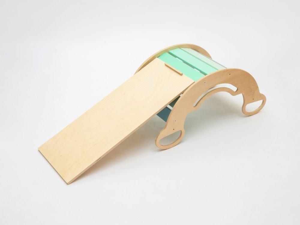 Kvalitný drevený obojstranný kúsok (len k hojdačke SMILE) má všestranné využitie. Z jednej strany zábavná šmykľavka, po ktorej sa deti zosunú možno na mäkký podložku, na druhej strane lezecká doska s úchytmi, ktorá rozvíja pohybové zručnosti vašej dievčatka aj chlapca. Obojstranná doska je doplnkom k Montessori hojdačke SMILE. Položená na bočnej hrane hojdačky smile vytvorí deťom praktický stolček na desiatu aj na maľovanie. Obojstranné prkno nie je možné používať s Montessori hojdačkami 5in1 ELIS DESIGN. Prkno je širšie ako naše dúhové a drevené hojdačky. PRKNO JE DOPLNKOM IBA KU MONTESSORI HOJDAČKÁM SMILE, ktorú premení na detský stolček.
