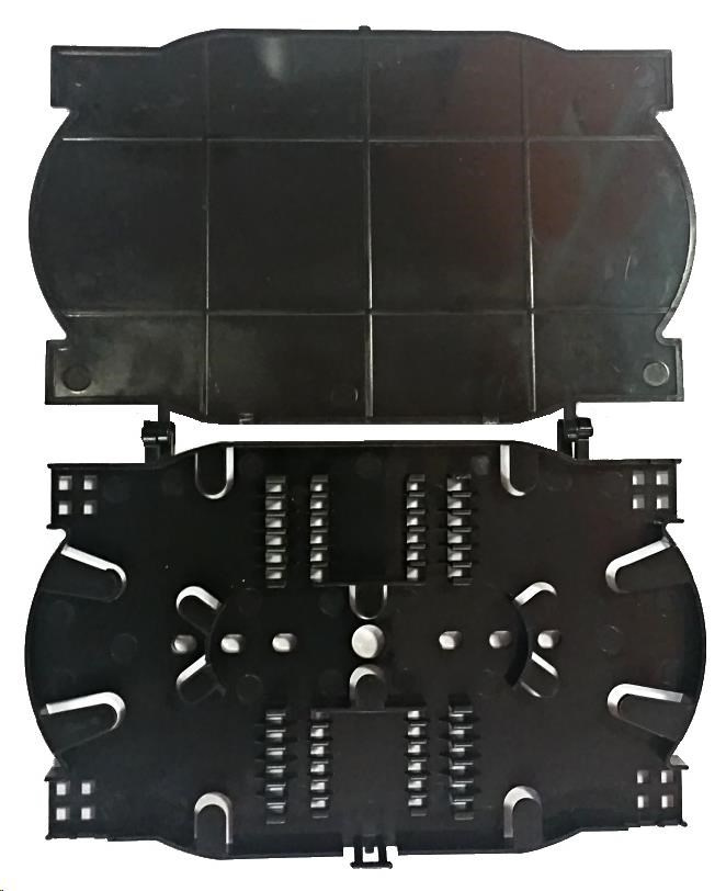 - Optická kazeta s uzáverom a hrebeňmi na 24 zvarov v 2 úrovniach, rozmery: 155x105x12mm