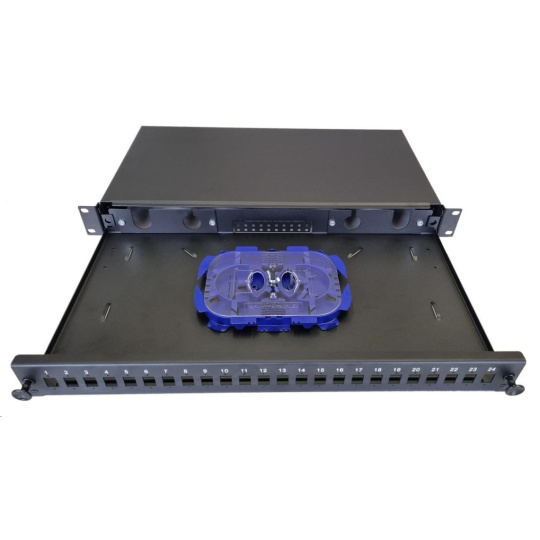 .Optická vana výsuvná 1U, 24x SC simplex (24x LC duplex, 24x E2000) s kazetou OPTRONIC pro 24 svárů, černá