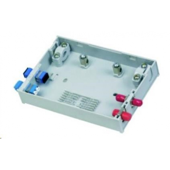 Malý plastový rozvádzač na odbočenie z hlavného vedenia. Umiestnenie 6 svoriek, 1x hlavné vedenie cez kábel, 4 výstupné porty. Výstupné porty môžu byť vybavené simplexnými adaptérmi pre ST, SC, FC a duplexné LC. Obsahuje adaptér pre pigtail káble (6 otvorov, priemer 3 mm). Rozmery: 150x104x27 mm - V cene nie sú zahrnuté optické adaptéry. - Vonkajšie rozmery: 150 x 104 x 27 mm - Vnútorný priestor: pojme zariadenie s rozmermi približne 105 x 77 x 20 mm - Pozície na ochranu zvaru: vhodné pre zvary s priemerom 3 mm - Priemer otvoru pre pigtail: 3 mm, vhodné pre štandardné prepojovacie káble..