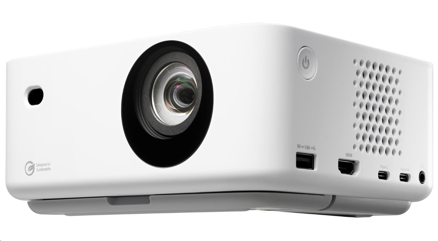 Inovatívna technológia Time-of-Flight (ToF) zabezpečuje automatickú geometrickú korekciu a korekciu zaostrenia a okamžite vytvára dokonale promítaný obraz. Korekcia štyroch rohov navyše umožňuje okamžité umiestnenie a prehrávanie. Domácí používatelia môžu využiť praktický vstupný napájací port USB-C, ktorý im umožňuje používať prenosné nabíjacie batérie PD 3.0, a vychutnať si video obsah na cestách pri sledovaní filmov v prírode, kempovaní, na dovolenke a podobne.