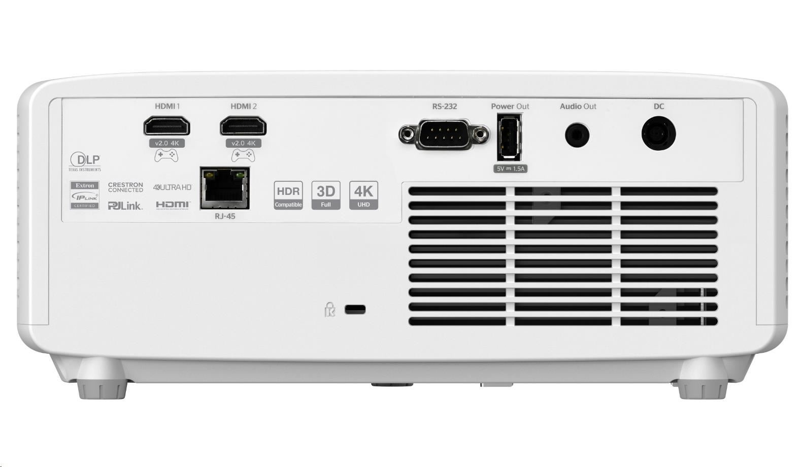Optoma projektor UHZ35ST (DLP, Laser, UHD, 3500 ANSI, 2xHDMI, RS232, RJ45, USB-A power, repro 1x15W)