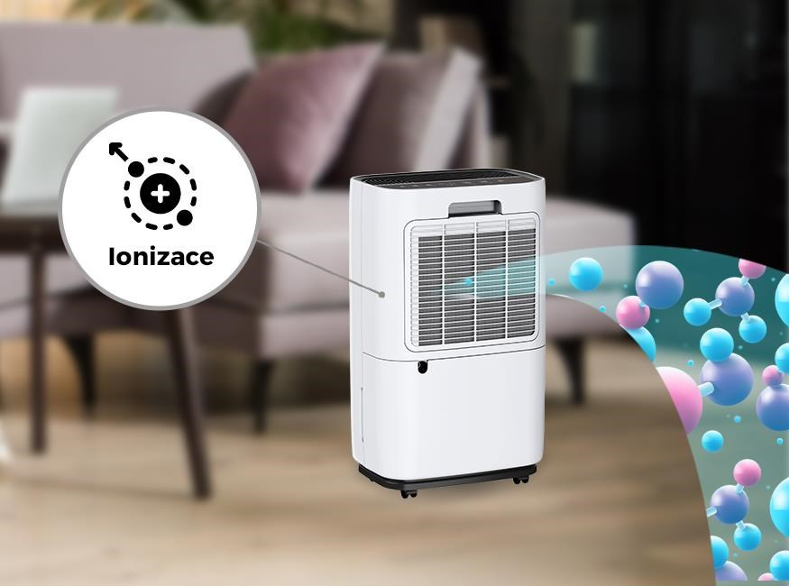 Ionizácia v odvlhčovači Dehum 1 má niekoľko dôležitých funkcií, ktoré prispievajú k zlepšeniu kvality vzduchu v miestnosti. Ionizácia prispieva k tomuto procesu tým, že záporné nabité ióny interagujú s molekulami vody vo vzduchu a spôsobujú, že kvapky vody sa zrážajú do väčších častíc. Odvlhčovač vzduchu s ionizáciou tak zlepšuje nielen vlhkosť vo vzduchu, ale aj jeho čistotu a môže mať pozitívny vplyv na prostredie v miestnosti a pohodu ľudí.