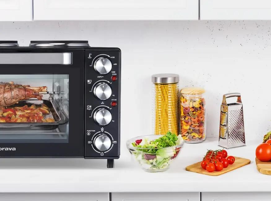 Orava Elektra-X28 elektrická trouba s dvouplotýnkou, 28 L, 2600 W, grilovací rošt, černá