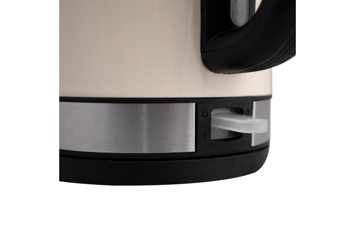 Automatická varná kanvica, krémová farba, Objem vody: max. 1,7 l, Napájanie: 220 - 240V ~ 50/60 Hz, 1 850 - 2 200W, VDE zástrčka, Varná nádoba na odnímateľnom 360 ° otočnom podstavci, Topné teleso zakryté doskou z ušľachtilej ocele, automatické vypnutie, Ochrana pred ohrevom bez vody, ukazovateľ napájania, S indikátorom hladiny vody