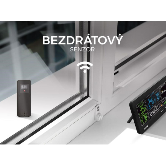 Meteo-1 je vybavená bezdrôtovým senzorom s dosahom až 30 metrov. Je tiež vodeodolný (IPX3), takže mu nevadí ani sprška dažďa či snehová nádielka. Jednoducho si ho položíte na okenný parapet alebo zavestíte na stenu. Má zabudovaný vlastný LCD displej, takže teplotu a vlhkosť si prečítate aj na senzore, aj na hlavnej obrazovke.
