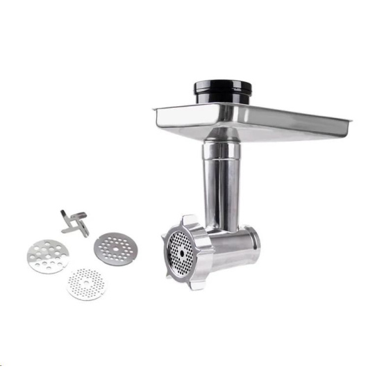 Kuchynský robot Chefino-M nie je len všestranným pomocníkom na miešanie, šľahanie a hnetenie, ale navyše v balení obsahuje aj praktický mlynček na mäso. Tento mlynček je navrhnutý tak, aby bez problémov zvládol spracovanie rôznych druhov mäsa, čo oceníte pri príprave domácich mäsových jedál. Vďaka jednoduchému rozobraniu a ľahkej údržbe si mlynček rýchlo obľúbite.