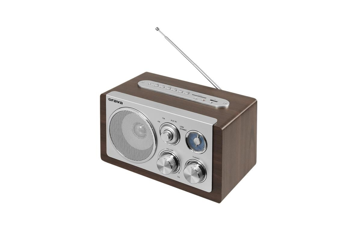 .Orava RR-29 A rádio, 1 x 3,5W, AM / FM rádio, USB, AUX vstup, SD karta, hnědá / stříbrná
