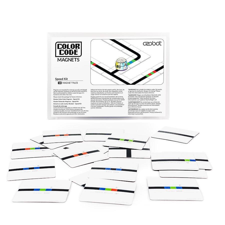 Rozširujúca magnetická sada Ozobot s farebnými kódmi predstavuje veľmi zábavný a interaktívny spôsob, ako učiť deti už od materského veku princípom kódovania. Sada Speed Kit obsahuje 18 dielikov skladačky, ktoré obohatia základnú magnetickú sadu Ozobot, a v spojení s robotmi Bit+ alebo Evo umožnia praktické precvičenie zručností v kódovaní a programovaní.