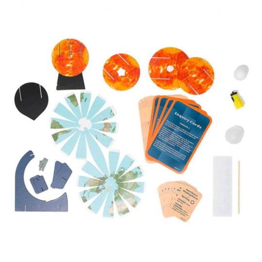 Začnite tým, že zostavíte modely planét a umiestnite ich na hraciu dosku. S pomocou faktografických kariet, aplikácie, prípadne robota Ozobot sa naučíte o striedaní ročných období a jednotlivých fázach Mesiaca. Vidíte, ako planéty obiehajú navzájom? Teraz bude jednoduché vyplniť záludné otázky v priložených pracovných zošitoch!