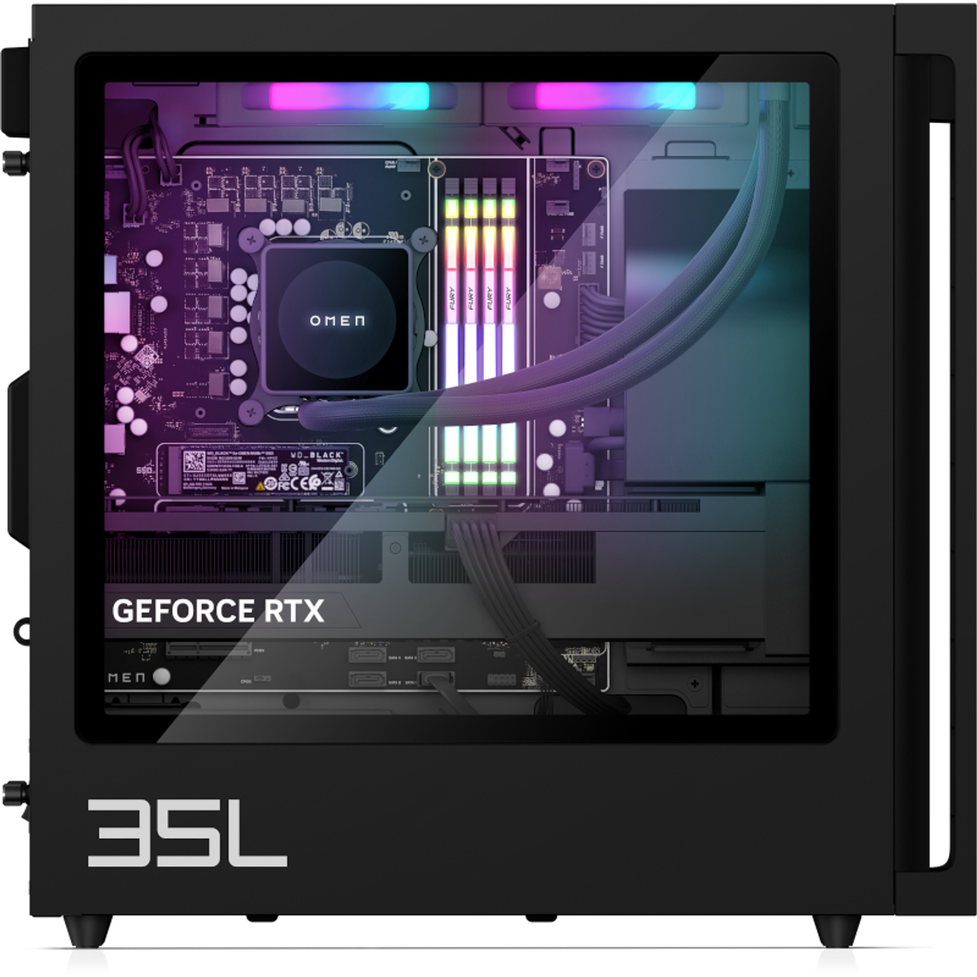 Zaži špičkový výkon s výkonným a štýlovým herným stolným počítačom OMEN 35L, ktorý je navrhnutý na bezproblémové inovácie a obsahuje vysokovýkonné komponenty OMEN.