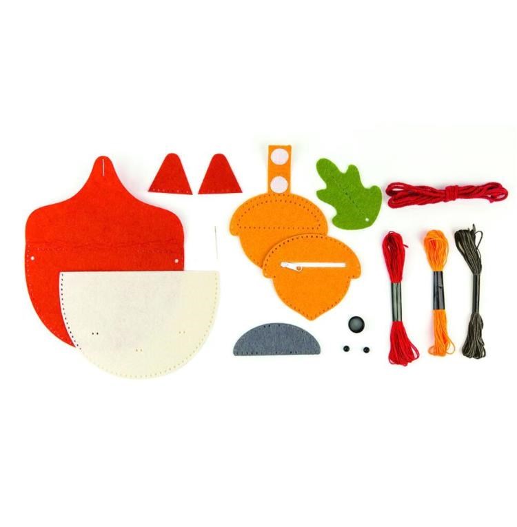 S touto tvořivou sadou si snadno vyrobíte svou vlastní kabelku přes tělo ve tvaru lišky, a také peněženku na zip ve tvaru žaludu. Nepotřebujete ani lepidlo! Pro děti od 6 let věku.