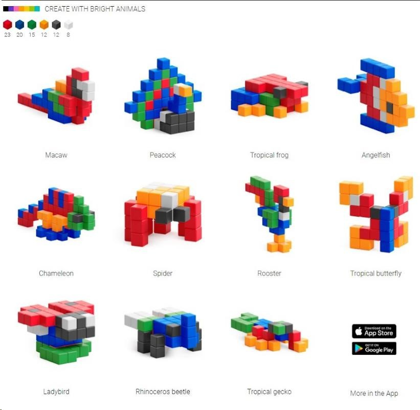 Sortiment PIXIO Bright Animals obsahuje 90 PIXIO blokov v 6 farbách. Oživte svoje kreatívne nápady