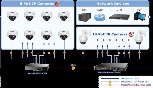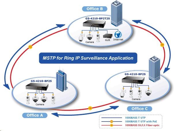Gigabitový spravovateľný prepínač IPv4/IPv6 s portami PoE (napájanie cez ethernet) na centralizované napájanie zariadení cez ethernet, ako sú IP kamery, prvky WiFi alebo telefóny VOIP. Zariadenie je vhodné na inštaláciu do kancelárskych alebo prezentačných priestorov. Je vhodný aj pre aplikácie v lokálnych rozvádzačoch, vzdialené pripojenie možno realizovať pomocou optických portov SFP. Šifrovaná webová správa alebo protokol SNMP zabezpečujú bezpečnú správu. Pripojenia koncových používateľov môžu byť zabezpečené pravidlami ACL/MAC alebo možnou autorizáciou na serveri RADIUS/TACACS. Vlastnosti: - 8 portov 1000Base-T, prepínanie, plný duplex (1000/2000 Mb/s), automatické vyjednávanie (10/100/1000 Mb/s) - kovové porty so zabudovaným injektorom PoE 802.3af, každý injektor do 30 W/port; celkový max. napájanie až 120 W - 2x SFP, 100/1000Base-X, pre inštaláciu optických modulov mini-GBIC s označením MFB a MGB - Auto-MDI/MDI-X, automatická detekcia priameho kríženia kábla aj pre 10/100 Mbps - 8k MAC adries, 4,1Mb buffer - priepustnosť: 20Gbps zbernica, 14,88Mp/s rýchlosť prenosu dát (64B) - podpora prenosu 10KB Jumbo rámcov - správa: WEB / SNMPv3 / telnet / konzola, s podporou zabezpečenia SSH/SSL - plná podpora IPv4 a IPv6 - VLAN IEEE 802.1Q, až 256 skupín, až 4094 VLAN ID, protokolové VLAN, VoIP VLAN - LACP agregácia portov 802.3ad, až 8 skupín - QoS 8 front, klasifikácia podľa prevádzky, vážený priemer, značka VLAN alebo 802.1p flag - Spanning tree protokol: STP / RSTP / MSTP - IGMPv3 Snooping, Querier, až 256 multicast skupín - Port mirroring- zrkadlenie portov: TX / RX / TX+RX / viac portov na jeden - Client security: access control list (ACL), MAC static table for authorized devices, RADIUS/TACACS+ authorization, DHCP snooping - Ochrana proti DoS útokom - Tepelná ochrana proti prehriatiu - ESD ochrana proti elektrostatike do 2kV DC - Rozmery: (330 x 155 x 44,5))mm; hmotnosť 1,7kg - Prevádzková teplota: 0-50°C - Interný AC zdroj 100-240V/50-60Hz, vlastný výkon do 30W..