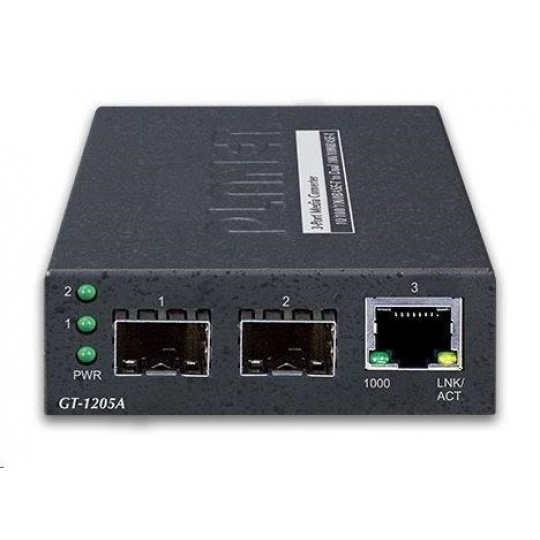 Planet GT-1205A Konvertor, 1x 10/100/1000Base-T RJ-45, 2x 100/1000Base-X SFP