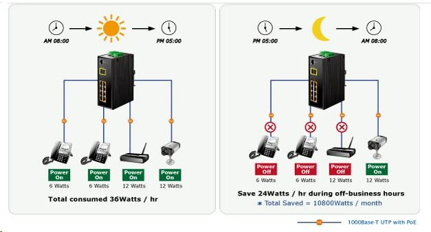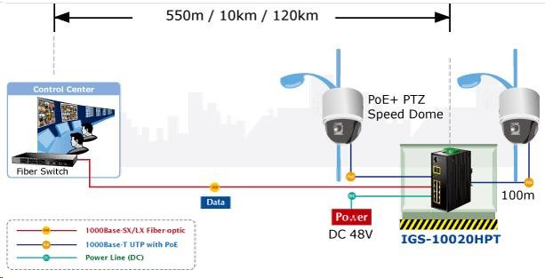 Planet IGS-10020HPT PoE switch 8x 1000Base-T, 2x SFP, 802.3at 270W, IP30, -40 až 75°C, SNMP, IGMPv3, IPv6 Inteligentné prepínače pre priemyselný Ethernet sú určené do náročných prevádzkových podmienok so širokým rozsahom prevádzkových teplôt, neistým napájaním a častými otrasmi. Zároveň poskytujú vynikajúce možnosti viacnásobného prepojenia na dosiahnutie robustného prepojenia systému s veľmi nízkym časom obnovy. IGS-10020HPT je vybavený pre redundanciu okrem známej metódy Spanning Tree (ktorej čas obnovy sa pohybuje v sekundách) najmä špecializovanou funkciou "Redundant ring", ktorá má čas obnovy a nájdenia novej cesty do 300 ms. Ako prepínač PoE môže priamo napájať až 8 zariadení IEEE 802.3at, a preto je ideálny pre aplikácie so zníženou dostupnosťou energie. Prepínače radu IGS sa ľahko inštalujú na štandardnú lištu DIN alebo priamo na stenu a umožňujú nasadenie známej technológie Ethernet aj v priemyselnom prostredí. Sú vhodné aj na inštaláciu vo vonkajších krytoch s veľkými výkyvmi prevádzkových teplôt (typicky bezdrôtové aplikácie a aplikácie MAN ISP). Vlastnosti: - 8 portov 1000Base-T, prepínanie, plný duplex (1000/2000 Mb/s), automatické vyjednávanie (10/100/1000 Mb/s), automatická detekcia priameho/krížového kábla na každom porte - pre všetky PoE IEEE 802.3at injektory so zaťažiteľnosťou 30 W/port, spolu až 270 W - 2 porty SFP na inštaláciu modulov 1000Base-SX/LX/BX alebo 100Base-FX - Priepustnosť: zbernica 20 Gb/s, 14,8 Mp/s (64B) - Podpora Jumbo Frame do 9 kB, 8k MAC adries, 4Mbitová vyrovnávacia pamäť - 255 VLAN IEEE 802.1Q, siete založené na MAC alebo protokole VLAN, VoIP VLAN - port trunking IEEE 802.3ad LACP - IGMP v1,v2,v3 až do 256 multicast skupín, režim IGMP querier - 8-úrovňová prioritizácia prevádzky QoS podľa portov, DSCP/ToS, 802.1p alebo 802.1Q tagy - podpora Spanning Tree IEEE 802.1d, Rapid Spanning Tree IEEE 802.1w - IP/MAC ACL (access control list) do 123 pravidel, MAC/IP binding - DHCP snooping - port shaper - administrace Web/SNMPv3 s podporou zabezpečeného přenosu SSH/SSL - podpora IPv4/IPv6 - PoE scheduler pro možnost zapínání/vypínaní napájení podle časového plánu - pole LED indikátorů pro diagnostiku provozu - instalace na DIN lištu, montážní díl součástí - instalace na zeď, montážní díl součástí - krytí IP30 - napájení: 48V DC redundantní, připojení možné ze dvou různých zdrojů (nejsou součástí balení); vlastní příkon do 30W - ochrana proti přepólování, připojení napájení na svorkovnici, umístění na spodním panelu (nepřekáží při montáži na zeď) - přepěťová ochrana napájení do 6kV proti napěťovým špičkám (EFT) - přepěťová ochrana LAN portů do 6kV proti elektrostatickému náboji (ESD) - spínací poplachové relé (24V/1A) při výpadku primárního napájení - zařízení je odolné proti pádu (IEC-60068-2-32) z výšky 7.