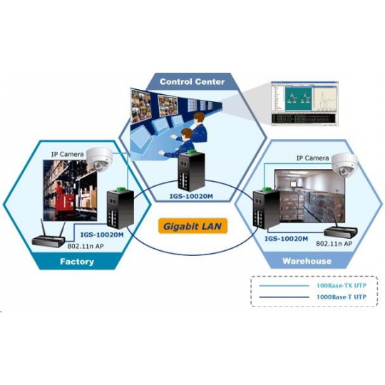Planet IGS-10020MT, 8X 1000BASE-T, 2x SFP, DIN, IP30, -40 AŽ 75°C, WEB/SNMPV3, VLAN, IGMPV3, ESD+EFT, IPV6 Inteligentné prepínače pre priemyselný Ethernet sú určené do náročných prevádzkových podmienok so širokým rozsahom prevádzkových teplôt, neistým napájaním a častými otrasmi. Zároveň poskytujú vynikajúce možnosti viacnásobného prepojenia na dosiahnutie robustného prepojenia systému s veľmi nízkym časom obnovy. IGS-10020MT je vybavený pre redundanciu okrem známej metódy Spanning Tree (ktorej čas obnovy sa pohybuje v sekundách) najmä špecializovanou funkciou "Redundant ring", ktorá má čas obnovy a nájdenia novej cesty do 300 ms. Prepínače radu IGS sa ľahko inštalujú na štandardnú lištu DIN alebo priamo na stenu a umožňujú nasadenie známej technológie Ethernet aj v priemyselnom prostredí. Sú vhodné aj na inštaláciu vo vonkajších krytoch s veľkými výkyvmi prevádzkových teplôt (typicky bezdrôtové aplikácie a aplikácie MAN ISP). Vlastnosti: - 8 portov 1000Base-T, prepínanie, plný duplex (1000/2000 Mb/s), automatické vyjednávanie (10/100/1000 Mb/s), automatická detekcia priameho/krížového kábla na každom porte - 2 porty SFP na inštaláciu modulov 1000Base-SX/LX/BX alebo 100Base-FX - priepustnosť zbernice 20 Gb/s, podpora Jumbo Frame do 9 kB, 8 kB MAC adries, 512 kB vyrovnávacia pamäť - 255 VLAN IEEE 802.1Q, siete založené na MAC alebo protokole VLAN, VoIP VLAN - port trunking IEEE 802.3ad LACP - IGMP v1,v2,v3 až do 256 multicast skupín, režim IGMP querier - 8-úrovňová prioritizácia prevádzky QoS podľa portov, DSCP/ToS, 802.1p alebo 802.1Q tagy - podpora Spanning Tree IEEE 802.1d, Rapid Spanning Tree IEEE 802.1w - IP/MAC ACL (access control list) do 123 pravidel - port shaper 500kb-80Mb/64kb-80Mb - administrace Web/SNMPv3 s podporou zabezpečeného přenosu SSH/SSL - podpora IPv4/IPv6 - pole LED indikátorů pro diagnostiku provozu - instalace na DIN lištu, montážní díl součástí - instalace na zeď, montážní díl součástí - krytí IP30 - napájení: 12-48V DC redundantní, připojení možné ze dvou různých zdrojů (nejsou součástí balení) - příkon do 10W - ochrana proti přepólování, připojení napájení na svorkovnici, umístění na spodním panelu (nepřekáží při montáži na zeď) - přepěťová ochrana napájení do 6kV proti napěťovým špičkám (EFT) - přepěťová ochrana LAN portů proti elektrostatickému náboji do 6kV (ESD) - spínací poplachové relé (24V/1A) při výpadku primárního napájení - zařízení je odolné proti pádu (IEC-60068-2-32) z výšky 75cm na všechny dopadové části - zařízení je odolné proti vibracím (IEC-60068-2-6) 10-500-10Hz,.