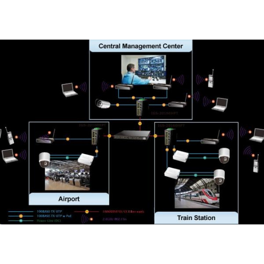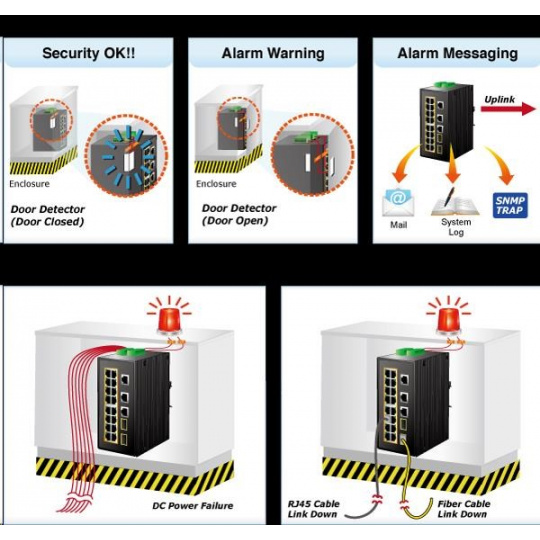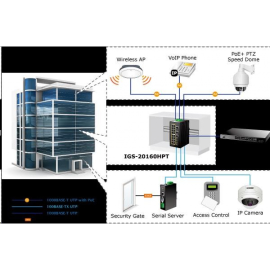 Planet IGS-20160HPT, 18x 1000BASE-T, 16x PoE 320W, 2x SFP, DIN, IP30, -40 AŽ 75°C, WEB/SNMPV3 IIinteligentné prepínače pre priemyselný Ethernet sú určené do náročných prevádzkových podmienok s veľkým rozsahom prevádzkových teplôt, neistým napájaním a častými otrasmi. Zároveň poskytujú vynikajúce možnosti viacnásobného prepojenia na dosiahnutie robustného prepojenia systému s veľmi nízkym časom obnovy. IGS-20160HPT je vybavený na redundanciu okrem známej metódy Spanning Tree (ktorej čas obnovy sa pohybuje v sekundách) predovšetkým špecializovanou funkciou ERPS (Ethernet Ring Protection Switching), ktorá má čas obnovy a nájdenia novej cesty do 50 ms. Podporované je statické smerovanie L3 až pre 32 pravidiel a 128 rozhraní VLAN. Prepínače radu IGS sa ľahko inštalujú na štandardnú lištu DIN alebo priamo na stenu a umožňujú nasadenie známej technológie Ethernet aj v priemyselnom prostredí. Sú vhodné aj na inštaláciu vo vonkajších krytoch s veľkými výkyvmi prevádzkových teplôt (typicky bezdrôtové aplikácie a aplikácie MAN ISP). Ich veľkou výhodou je predĺžená MTBF! Sieťové funkcie: - 18 portov 1000Base-T, prepínanie, plný duplex (1000/2000 Mb/s), automatické vyjednávanie (10/100/1000 Mb/s), automatická detekcia priameho/krosového kábla na každom porte - 16 portov PoE injektory IEEE 802.3at se zatížitelností 30W/port; celkově až 320W při duálním napájení, při jednoduchém napájení výkon do 260W - 2 porty SFP pro instalaci modulů 1000Base-SX/LX/BX nebo 100Base-FX, sdílené s metalickými porty 17-20, podpora SFP-DDM (Digital Diagnostic Monitor) - 1x sériová konzole, RJ-45 - propustnost: sběrnice 40Gbps, provozně 29,7Mp/s(64B) - podpora přenosu Jumbo Frame do 9kB, 8k MAC adres, buffer 4MBits - správa přepínače Web/SNMPv3/konzole s podporou zabezpečeného přenosu SSH/SSL - alarm email ve spojení s I/O a stavem linek - podpora TCP IPv4/IPv6 - L3 statické routování, až 32 pravidel a 8 VLAN rozhraní - 255 VLAN IEEE 802.1Q, siete založené na MAC alebo protokole VLAN, VoIP VLAN - port trunking IEEE 802.3ad LACP, až 10 skupín po 8 portoch - IGMP v1,v2,v3 až 256 multicastových skupín, režim IGMP querier - 8-úrovňová prioritizácia prevádzky QoS podľa portov, DSCP/ToS, 802.1p alebo 802.1Q tagy - port shaper v rozsahu 500kb-1000Mb/s - IEEE 802.1d Protokol Spanning tree, IEEE 802.1w Protokol Rapid spanning tree, IEEE 802.1s Protokol viacnásobného rozprestierajúceho sa stromu - "E.R.P.S ring" pre kruhovú topológiu s časom obnovy <50 ms- IP/MAC ACL (zoznam riadenia prístupu) až do 256 pravidiel - IEEE 802.1x (RADIUS) - Väzba IP+MAC, VLAN+MAC, 256 pravidiel - Zrkadlenie portov: TX/RX/RX+TX, viac portov na port - DHCP snooping na potlačenie nežiaducich serverov v sieti - IEEE 802.1ab LLDP: automatická detekce typu připojených zařízení - diagnostika kabeláže, stanovuje délku kabeláže a případnou vzdálenost k závadě - podpora MODBUS protokolu (platí pro poslední verzi firmware) Fyzické vlastnosti: - napájení: duálně DC 48~56V, připojení není nutné ale je doporučené ze dvou různých zdrojů (nejsou součástí balení) - vlastní příkon <11W- I/O digitální rozhraní: 2x vstupy + 2x výstupy, terminálový blok - spínací poplachové relé (24V/1A) při výpadku primárního napájení - instalace na DIN lištu nebo na zeď, montážní díl součástí - krytí IP30 - pole LED indikátorů pro diagnostiku provozu - ochrana proti přepólování, připojení napájení na svorkovnici, umístění na spodním panelu (nepřekáží při montáži na zeď) - přepěťová ochrana LAN portů proti elektrostatickému náboji do 6kV (ESD) - zařízení je odolné proti pádu (IEC-60068-2-32) z výšky 75cm na všechny dopadové části - zařízení je odoln.
