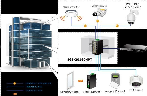 Planet IGS-20160HPT, 18x 1000BASE-T, 16x PoE 320W, 2x SFP, DIN, IP30, -40 AŽ 75°C, WEB/SNMPV3 IIinteligentné prepínače pre priemyselný Ethernet sú určené do náročných prevádzkových podmienok s veľkým rozsahom prevádzkových teplôt, neistým napájaním a častými otrasmi. Zároveň poskytujú vynikajúce možnosti viacnásobného prepojenia na dosiahnutie robustného prepojenia systému s veľmi nízkym časom obnovy. IGS-20160HPT je vybavený na redundanciu okrem známej metódy Spanning Tree (ktorej čas obnovy sa pohybuje v sekundách) predovšetkým špecializovanou funkciou ERPS (Ethernet Ring Protection Switching), ktorá má čas obnovy a nájdenia novej cesty do 50 ms. Podporované je statické smerovanie L3 až pre 32 pravidiel a 128 rozhraní VLAN. Prepínače radu IGS sa ľahko inštalujú na štandardnú lištu DIN alebo priamo na stenu a umožňujú nasadenie známej technológie Ethernet aj v priemyselnom prostredí. Sú vhodné aj na inštaláciu vo vonkajších krytoch s veľkými výkyvmi prevádzkových teplôt (typicky bezdrôtové aplikácie a aplikácie MAN ISP). Ich veľkou výhodou je predĺžená MTBF! Sieťové funkcie: - 18 portov 1000Base-T, prepínanie, plný duplex (1000/2000 Mb/s), automatické vyjednávanie (10/100/1000 Mb/s), automatická detekcia priameho/krosového kábla na každom porte - 16 portov PoE injektory IEEE 802.3at se zatížitelností 30W/port; celkově až 320W při duálním napájení, při jednoduchém napájení výkon do 260W - 2 porty SFP pro instalaci modulů 1000Base-SX/LX/BX nebo 100Base-FX, sdílené s metalickými porty 17-20, podpora SFP-DDM (Digital Diagnostic Monitor) - 1x sériová konzole, RJ-45 - propustnost: sběrnice 40Gbps, provozně 29,7Mp/s(64B) - podpora přenosu Jumbo Frame do 9kB, 8k MAC adres, buffer 4MBits - správa přepínače Web/SNMPv3/konzole s podporou zabezpečeného přenosu SSH/SSL - alarm email ve spojení s I/O a stavem linek - podpora TCP IPv4/IPv6 - L3 statické routování, až 32 pravidel a 8 VLAN rozhraní - 255 VLAN IEEE 802.1Q, siete založené na MAC alebo protokole VLAN, VoIP VLAN - port trunking IEEE 802.3ad LACP, až 10 skupín po 8 portoch - IGMP v1,v2,v3 až 256 multicastových skupín, režim IGMP querier - 8-úrovňová prioritizácia prevádzky QoS podľa portov, DSCP/ToS, 802.1p alebo 802.1Q tagy - port shaper v rozsahu 500kb-1000Mb/s - IEEE 802.1d Protokol Spanning tree, IEEE 802.1w Protokol Rapid spanning tree, IEEE 802.1s Protokol viacnásobného rozprestierajúceho sa stromu - "E.R.P.S ring" pre kruhovú topológiu s časom obnovy <50 ms- IP/MAC ACL (zoznam riadenia prístupu) až do 256 pravidiel - IEEE 802.1x (RADIUS) - Väzba IP+MAC, VLAN+MAC, 256 pravidiel - Zrkadlenie portov: TX/RX/RX+TX, viac portov na port - DHCP snooping na potlačenie nežiaducich serverov v sieti - IEEE 802.1ab LLDP: automatická detekce typu připojených zařízení - diagnostika kabeláže, stanovuje délku kabeláže a případnou vzdálenost k závadě - podpora MODBUS protokolu (platí pro poslední verzi firmware) Fyzické vlastnosti: - napájení: duálně DC 48~56V, připojení není nutné ale je doporučené ze dvou různých zdrojů (nejsou součástí balení) - vlastní příkon <11W- I/O digitální rozhraní: 2x vstupy + 2x výstupy, terminálový blok - spínací poplachové relé (24V/1A) při výpadku primárního napájení - instalace na DIN lištu nebo na zeď, montážní díl součástí - krytí IP30 - pole LED indikátorů pro diagnostiku provozu - ochrana proti přepólování, připojení napájení na svorkovnici, umístění na spodním panelu (nepřekáží při montáži na zeď) - přepěťová ochrana LAN portů proti elektrostatickému náboji do 6kV (ESD) - zařízení je odolné proti pádu (IEC-60068-2-32) z výšky 75cm na všechny dopadové části - zařízení je odoln.