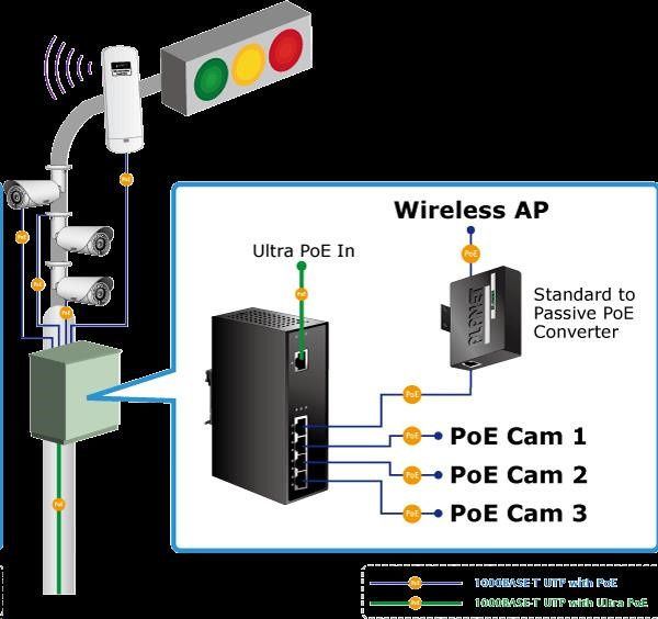 Priemyselný extender Power over Ethernet IEEE 802.3at so 4-portovým gigabitovým prepínačom a injektormi na dodatočné napájanie zariadení cez Ethernet. Injektory je možné zaťažovať až do 60 W v kombinácii 2x 802.3at s výkonom 30 W alebo 4x 802.3af pri 12 W. Určené na použitie s kamerami PTZ, dotykovými monitormi, zariadeniami VoIP alebo prístupovými bodmi WiFi v teréne a na ťažko prístupných miestach. Extender je možné prevádzkovať pri teplotách od -40 do 75 °C a je odolný voči vibráciám, preťaženiu a vonkajším mechanickým vplyvom; všetky porty obsahujú ochranu ESD+EFT proti prepätiu a elektrostatike. Extender je napájaný priamo z injektora PoE UltraPower (60 W) Planet POE-171 alebo POE-173! Parametre: - ethernetové rozhranie: 1x vstup PoE (Ultra Power 60W); 4x injektory - celková zaťažiteľnosť injektorov 60W (2x 30W alebo 4x 12W) - kompatibilné s IEEE 802.3u, IEEE 802.3ab 1000Base-T, IEEE 802.3af, IEEE 802.3at - instalace na DIN lištu nebo na zeď, montážní díl součástí - krytí IP30, skříň celohliníková - zařízení je odolné proti pádu (IEC-60068-2-32) z výšky 75cm na všechny dopadové části - zařízení je odolné proti vibracím (IEC-60068-2-6) 10-500-10Hz, 4x g, 0,5oct/min - zařízení je odolné proti přetížení krátkodobému zrychlení 50x g, dlouhodobému 4x g (IEC-60068-2-27) - integrována ochrana EFT/ESD proti zavlečení cizího napětí a proti rychlým přechodovým jevům do 6KV DC - EMI/EMS, elektromagnetická kompatibilita a slučitelnost dle CE EN-6100-4-2,3,4,5,6 - elektrická bezpečnost dle CE EN-60950 - LED indikace zatížení - pracovní teplota -40 až 75°C, vlhkost do 95% - rozměry: 135 x 87.8 x 56 mm - hmotnosť 715 g - napájanie PoE IEEE 802.3at, 60W injektor UltraPower (Planet POE-171 alebo POE-173)..