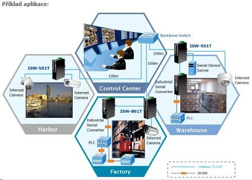 Planet ISW-501T, 5x 10/100, DIN, IP30, rozšírený teplotný rozsah -40 ~ 75 st.C Priemyselné ethernetové prepínače sú určené do náročných prevádzkových podmienok so širokým rozsahom prevádzkových teplôt, neistým napájaním a častými otrasmi. Prepínače radu ISW sa ľahko inštalujú na štandardnú lištu DIN alebo priamo na stenu a umožňujú nasadenie známej technológie Ethernet aj v priemyselnom prostredí. Sú vhodné aj na inštaláciu vo vonkajších krytoch s veľkými výkyvmi prevádzkových teplôt (typicky bezdrôtové aplikácie a aplikácie MAN ISP). Vlastnosti: 5 portů 100 Base-TX, Switching, Full Duplex (100/200 Mbps), Auto-Negotiation (10/100 Mbps) 2k MAC adres automatická detekce přímý/křížený kabel na každém portu pole LED indikátorů pro diagnostiku provozu instalace na DIN lištu, montážní díl součástí instalace na zeď, montážní díl součástí krytí IP30, skříň celohliníková napájení: 12-48V DC redundantní, připojení možné ze dvou různých zdrojů (nejsou součástí balení) ochrana proti přepólování, připojení napájení na svorkovnici, umístění na spodním panelu (nepřekáží při montáži na zeď) zařízení je odolné proti pádu (IEC-60068-2-32) z výšky 75cm na všechny dopadové části zařízení je odolné proti vibracím (IEC-60068-2-6) 10-500-10Hz, 4x g, 0,5oct/min zařízení je odolné proti přetížení krátkodobému zrychlení 50x g, dlouhodobému 4x g (IEC-60068-2-27) EMI/EMS, elektromagnetická kompatibilita a slučitelnost dle CE EN-6100-4-2,3,4,5,6 elektrická bezpečnost d C, vlhkosť do 90 % výkon 11 W hmotnosť: 438 g rozmery: 135 x 87 x 32 mm..