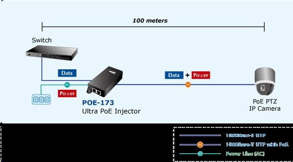 Planet POE-173 Ultra Poe injektor napájení po ethernetu IEEE802.3at/af, 60W, Gigabit