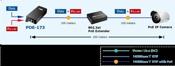 "Power over Ethernet Injector" s maximálnou zaťažiteľnosťou do 60 W na napájanie zariadení cez Ethernet. Určené na použitie s kamerami PTZ, dotykovými monitormi, zariadeniami VoIP alebo prístupovými bodmi WiFi. Napájanie PoE je možné implementovať aj na gigabitový Ethernet, napájanie sa prenáša po všetkých UTP/FTP ethernetových vodičoch, injektor podporuje IEEE 802.3 / 802.3u / 802.3ab, 10/100/1000Base-T. Injektor je kompatibilný so štandardom IEEE 802.3af / 802.3at. Ak napájané zariadenie nemá možnosť napájania PoE IEEE802.3at alebo chcete naplno využiť výkon injektora, musíte použiť rozdeľovač POE-171S. Ak máte zariadenie, ktoré možno napájať prostredníctvom PoE 802.3af/802.3at, ktoré môžu byť pripojené priamo k vstrekovaču. Informácie: Rozhranie: 2x port RJ-45: 1x dátový + napájací výstup a 1x dátový vstup IEEE 802.3af/at, 50V/DC na linku, zaťažiteľnosť do 60W Napájanie: interný zdroj 100-240V/AC Rozmery: 115 x 62.5 x 31 mm Hmotnosť: 177 g..