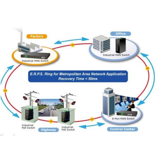 witch obsahuje 8 x RJ-45 port s rýchlosťou 10/100/1000 Mbps a PoE napájaním, 2 x RJ-45 s rýchlosťou 10/100/1000 Mbps zdieľané s dvoma SFP portami. Okrem toho je vybavený interným modulom ONVIF na detekciu a informácie o IP kamerách v sieti. Vďaka kovovému puzdru s certifikátom IP30 odoláva vysokým teplotám od -40 °C do 75 °C, takže je vhodný na použitie v náročných podmienkach. Prepínacia kapacita je 24 Gb/s bez blokovania a priepustnosť je 17,85 Mpps. Pre každý z ôsmich portov RJ-45 je k dispozícii 36 W výkonu PoE, takže môžete napájať aj tie najnáročnejšie zariadenia. Prítomné sú aj dva porty SFP na rýchly prenos dát v optickej sieti.ZÁKLADNÉ ŠPECIFIKÁCIE