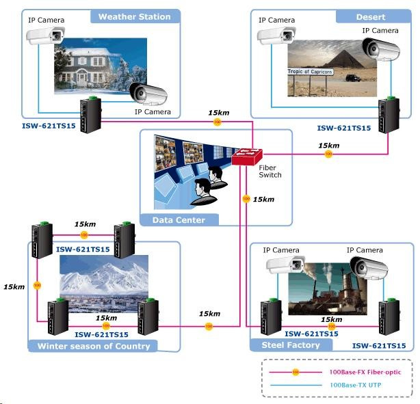 Planet switch ISW-621TS15, průmysl.verze 4x10/100+2x100BaseFX (SC) SM 15km, DIN, IP30, -40 až 75°C, 12-48V