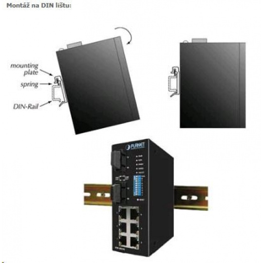 Planet switch ISW-801T, 8x 10/100, DIN,IP30, rozšířený teplotní rozsah -40~75 st.C