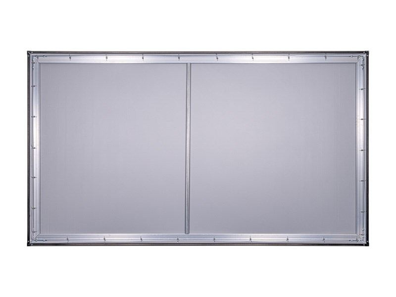 Rám plátna je potiahnutý čiernym semišom pre pohltenie okolitého svetla a zvýraznenie farieb projekcie.