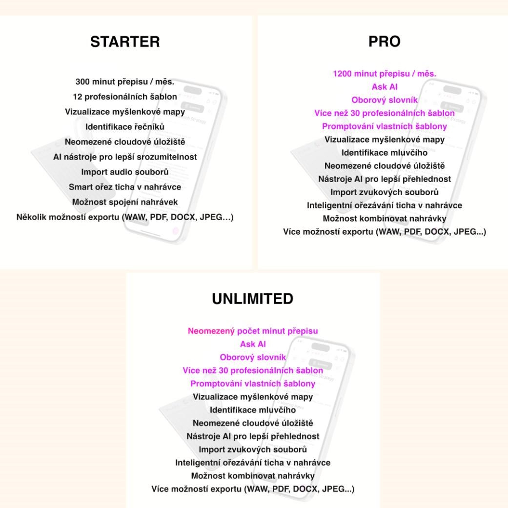 Pre prepis, sumarizáciu a ďalšie funkcie záznamníka Plaud je dostupná služba Plaud AI membership. Ak vám stačí 300 a menej, môžete pokračovať s plánom Starter, ktorý je zadarmo a ponúka prakticky všetky funkcie. Ak potrebujete viac, je pre vás plán Pro s 1200 minútami prepisu a prístupom k experimentálnym funkciám, ako je identifikácia rečníka alebo prekladač, ktoré sa budú priebežne objavovať v aplikácii. Obe plány ponúknu 10 000 minút cloudového úložiska a AI potlačenia šumu.
