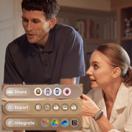 Plaud Note Pin zabezpečuje bezproblémovú integráciu na rôznych platformách, ako sú Google, Microsoft, Notion a ďalšie. Táto funkcia uľahčuje zdieľanie a synchronizáciu záznamov a poznámok, čím zvyšuje efektivitu vašej práce. Vďaka maximálnej flexibilite môžete mať všetky dôležité informácie na dosah ruky a mať k nim prístup odkiaľkoľvek a kedykoľvek.