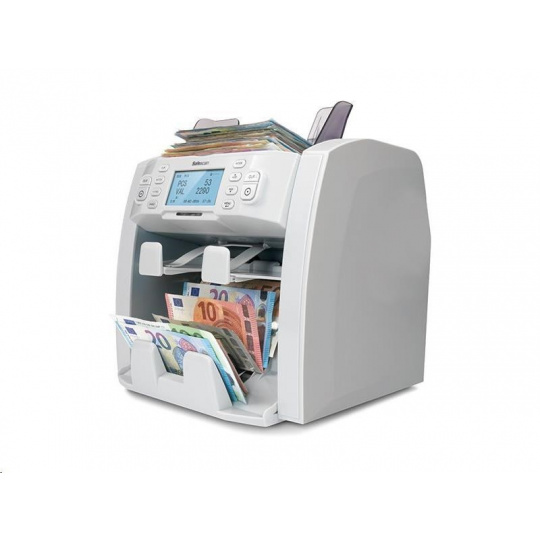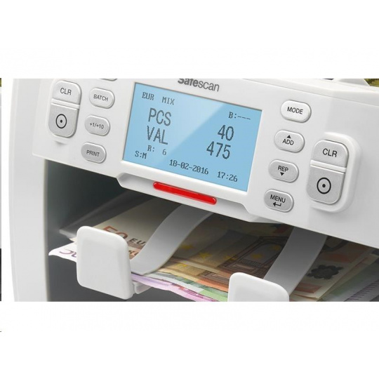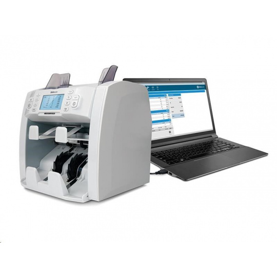 - Počítačka Safescan 2985-SX je skvelým pomocníkom pri efektívnom a rýchlom počítaní, triedení a overovaní bankoviek. - Vďaka konštrukcii s dvoma výstupnými priehradkami a technológii CIS dokáže počítačka počítať aj hodnoty najmodernejších typov bankoviek, ako sú bankovky vytlačené na polyméroch, s priehľadnými okienkami alebo s takmer rovnakými nominálnymi hodnotami. - Počítačka je určená na veľké množstvá bankoviek a je ideálna pre veľké podniky, ktoré potrebujú rýchle a bezchybné počítanie viacerých mien s detekciou pravosti. - Šetrí čas a eliminuje chyby pri počítaní. - Veľký zásobník pojme až 300 bankoviek a počíta s tromi rôznymi rýchlosťami, čím poskytuje maximálnu flexibilitu. - Počíta triedené bankovky akejkoľvek meny a netriedené bankovky CZK, EUR, GBP, CHF, USD, PLN, BGN. - 8-bodová detekcia falzifikátov - UV, magnetické a infračervené prvky, kovový povlak, vodoznak, farba, veľkosť a hrúbka. - 4 štandardné meny na detekciu a počítanie: GBP, EUR, USD a CHF. - Počas procesu počítania zostávajú podozrivé bankovky v susednej výstupnej priehradke, zatiaľ čo počítanie pokračuje. - Automatické rozpoznávanie meny a nominálnej hodnoty. - Triedi a otáča bankovky v dvoch výstupných priehradkách pomocou modernej technológie CIS. - Dokáže skenovať sériové čísla bankoviek. - Vhodné pre polymérové bankovky a nové bankovky série Európa...