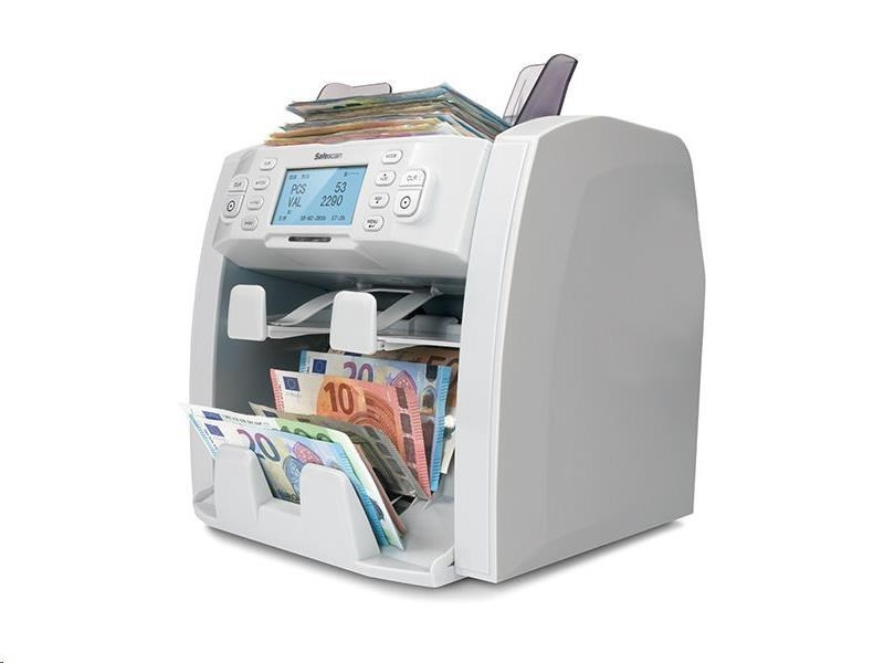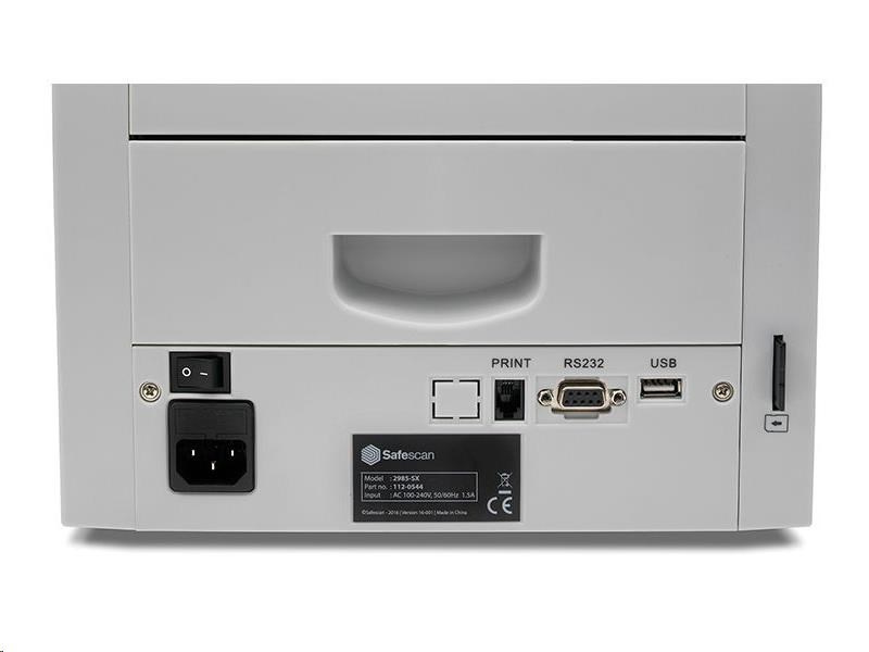 - Počítačka Safescan 2985-SX je skvelým pomocníkom pri efektívnom a rýchlom počítaní, triedení a overovaní bankoviek. - Vďaka konštrukcii s dvoma výstupnými priehradkami a technológii CIS dokáže počítačka počítať aj hodnoty najmodernejších typov bankoviek, ako sú bankovky vytlačené na polyméroch, s priehľadnými okienkami alebo s takmer rovnakými nominálnymi hodnotami. - Počítačka je určená na veľké množstvá bankoviek a je ideálna pre veľké podniky, ktoré potrebujú rýchle a bezchybné počítanie viacerých mien s detekciou pravosti. - Šetrí čas a eliminuje chyby pri počítaní. - Veľký zásobník pojme až 300 bankoviek a počíta s tromi rôznymi rýchlosťami, čím poskytuje maximálnu flexibilitu. - Počíta triedené bankovky akejkoľvek meny a netriedené bankovky CZK, EUR, GBP, CHF, USD, PLN, BGN. - 8-bodová detekcia falzifikátov - UV, magnetické a infračervené prvky, kovový povlak, vodoznak, farba, veľkosť a hrúbka. - 4 štandardné meny na detekciu a počítanie: GBP, EUR, USD a CHF. - Počas procesu počítania zostávajú podozrivé bankovky v susednej výstupnej priehradke, zatiaľ čo počítanie pokračuje. - Automatické rozpoznávanie meny a nominálnej hodnoty. - Triedi a otáča bankovky v dvoch výstupných priehradkách pomocou modernej technológie CIS. - Dokáže skenovať sériové čísla bankoviek. - Vhodné pre polymérové bankovky a nové bankovky série Európa...