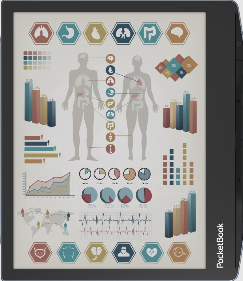 7“ farebná obrazovka, bezpečná pre oči a založená na najnovšej technológii E Ink Kaleido™ 3. O 50 % vyššie rozlíšenie farebných e-častí a PPI.