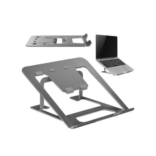 Podstava na notebook laptop Fiber Mounts M4C16G Prenosná hliníková podstava / stojan na notebook alebo laptop 11-15", polohovateľný, nosnosť 5kg, farba šedá (do striebra) Kvalitná hliníková podstaľa / stojan na ergonomické podloženie notebooku alebo laptopu s uhlopriečkou 11-15" (bežné veľkosti) a 6-stupňové polohovanie 78mm až 124mm pre nastavenie najvhodnejšieho uhla sklonu pre správne držanie tela pri práci alebo hraní na notebooku alebo laptopu. Podstavec je opatrený protisklzovými silikónovými podložkami, ktoré zariadenie výborne stabilizujú a nebránia cirkulácii vzduchu pre spoľahlivé chladenie. Hliníkový ergonomický podstavec na notebook Fiber Mounts M4C16G Technické údaje: - nosnosť 5kg - na notebooky a laptopy s uhlopriečkou 11-15" - 6 stupňov nastavenia výšky 78-124mm - protisklzové silikónové podložky pre spoľahlivé zafixovanie polohy - výrazné zlepšenie ergonómie pre pohodlnú prácu alebo hranie - neobmedzuje dostatočné chladenie prístroja - možnosť zloženia pre jednoduché prenášanie alebo na cesty (235x223x13mm) - materiál hliník - farebné prevedenie šedé - záruka 5 rokov Kvalitná hliníková podstava stojanček na notebook pre výrazné zlepšenie ergonómie a pohodlia pri práci alebo hraní hier Fiber Mounts M4C16G Podstava je vhodná pre všetky bežné veľkosti notebookov a laptopov od všetkých výrobcov. Odporúčaná je veľkosť notebooku 11-15", ale fungovala rovnako spoľahlivo aj pri použití na notebooku s veľkosťou 17,1". Odporúčame nielen na pracovné účely, ale aj pri použití notebooku deťmi pri hraní hier - výrazná úľava pre vaše chrbty, pretože značne obmedzuje hrbenie.