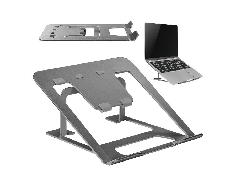 Podstava na notebook laptop Fiber Mounts M4C16G Prenosná hliníková podstava / stojan na notebook alebo laptop 11-15", polohovateľný, nosnosť 5kg, farba šedá (do striebra) Kvalitná hliníková podstaľa / stojan na ergonomické podloženie notebooku alebo laptopu s uhlopriečkou 11-15" (bežné veľkosti) a 6-stupňové polohovanie 78mm až 124mm pre nastavenie najvhodnejšieho uhla sklonu pre správne držanie tela pri práci alebo hraní na notebooku alebo laptopu. Podstavec je opatrený protisklzovými silikónovými podložkami, ktoré zariadenie výborne stabilizujú a nebránia cirkulácii vzduchu pre spoľahlivé chladenie. Hliníkový ergonomický podstavec na notebook Fiber Mounts M4C16G Technické údaje: - nosnosť 5kg - na notebooky a laptopy s uhlopriečkou 11-15" - 6 stupňov nastavenia výšky 78-124mm - protisklzové silikónové podložky pre spoľahlivé zafixovanie polohy - výrazné zlepšenie ergonómie pre pohodlnú prácu alebo hranie - neobmedzuje dostatočné chladenie prístroja - možnosť zloženia pre jednoduché prenášanie alebo na cesty (235x223x13mm) - materiál hliník - farebné prevedenie šedé - záruka 5 rokov Kvalitná hliníková podstava stojanček na notebook pre výrazné zlepšenie ergonómie a pohodlia pri práci alebo hraní hier Fiber Mounts M4C16G Podstava je vhodná pre všetky bežné veľkosti notebookov a laptopov od všetkých výrobcov. Odporúčaná je veľkosť notebooku 11-15", ale fungovala rovnako spoľahlivo aj pri použití na notebooku s veľkosťou 17,1". Odporúčame nielen na pracovné účely, ale aj pri použití notebooku deťmi pri hraní hier - výrazná úľava pre vaše chrbty, pretože značne obmedzuje hrbenie.
