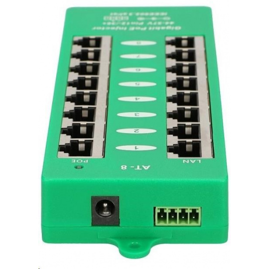 POE injektor aktivní - 8x 1Gb/s, stíněný, svorkovnice, 802.3af/at