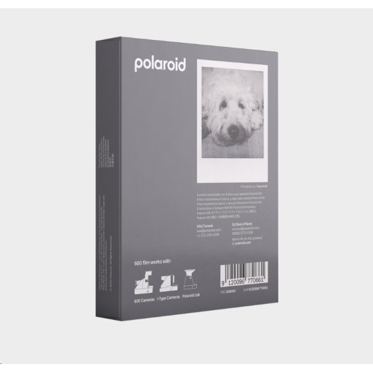 Osem okamžitých čiernobielych fotografií s bielymi rámečkami. Pre použitie v fotoaparátoch typu Polaroid 600 a fotoaparátoch i-Type.