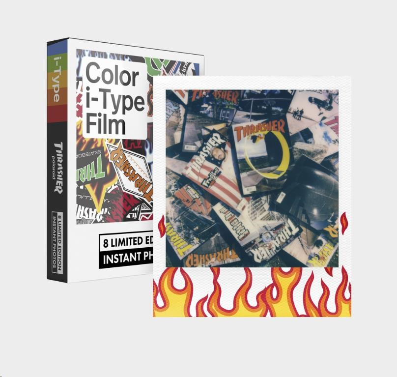 Total mystery, total mayhem. That’s what you’ll get from the Polaroid Color i-Type Film – Thrasher Edition. Scorching with 8 frames from the line-up of 11, each with their own artwork. But let’s be real—you probably don’t need frames sizzling with imagery from the mind of Neckface. Or with flames that look like they’ll burn your fingers off.