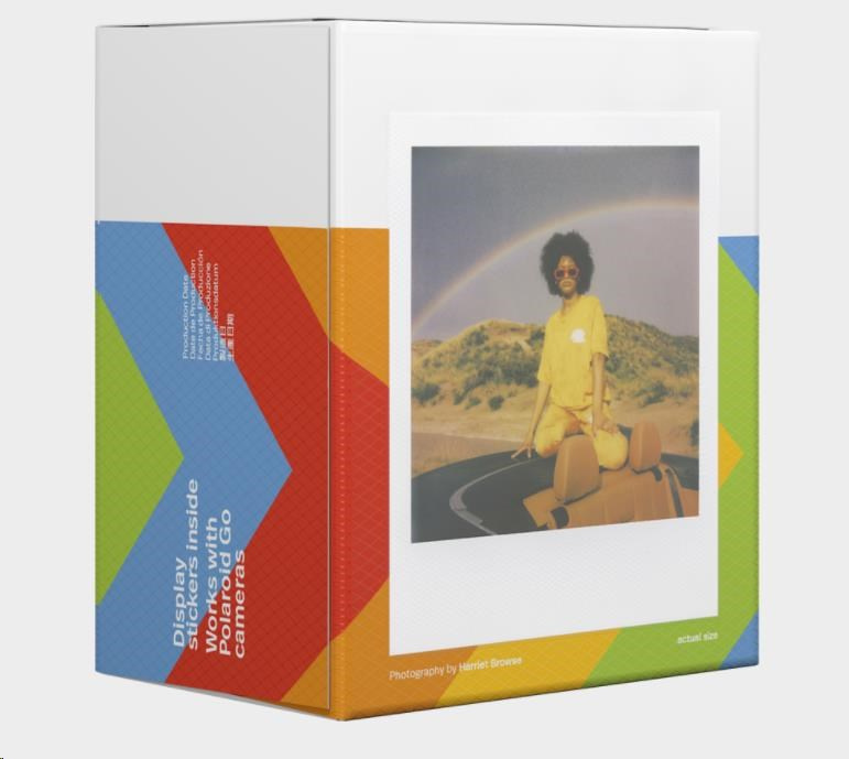 Každé balenie obsahuje 16 farebných okamžitých fotografií s lesklým bielym rámom, pripravených na denné svetlo. Exkluzívne na použitie s fotoaparátmi Polaroid Go. Veľkosť: 66,6 × 53,9 mm / Veľkosť obrázka: 47 × 46 mm Biely rám ASA 640 Vývoj fotografií za 10-15 minút Najlepšie sa skladuje v chladničke.